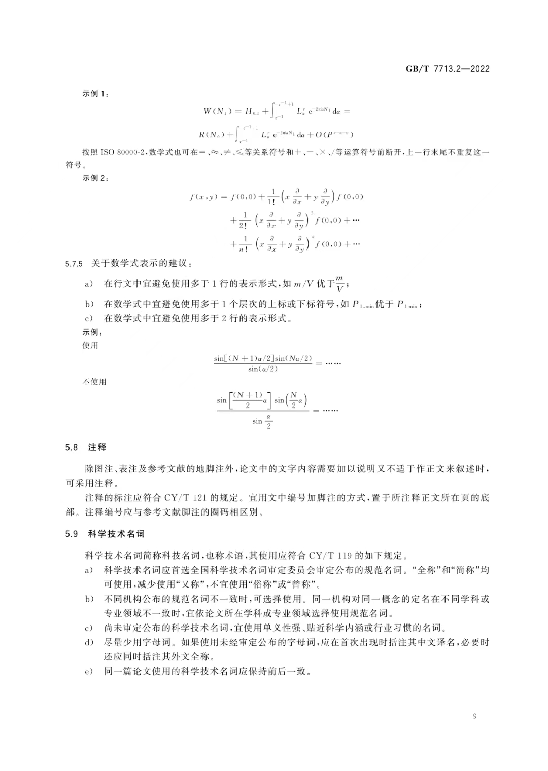 - 在“编排格式”中,选列了学术论文的编号、量和单位、插图、表格数字、数学式、注释、科学技术g)名词的规范化要点及示例;