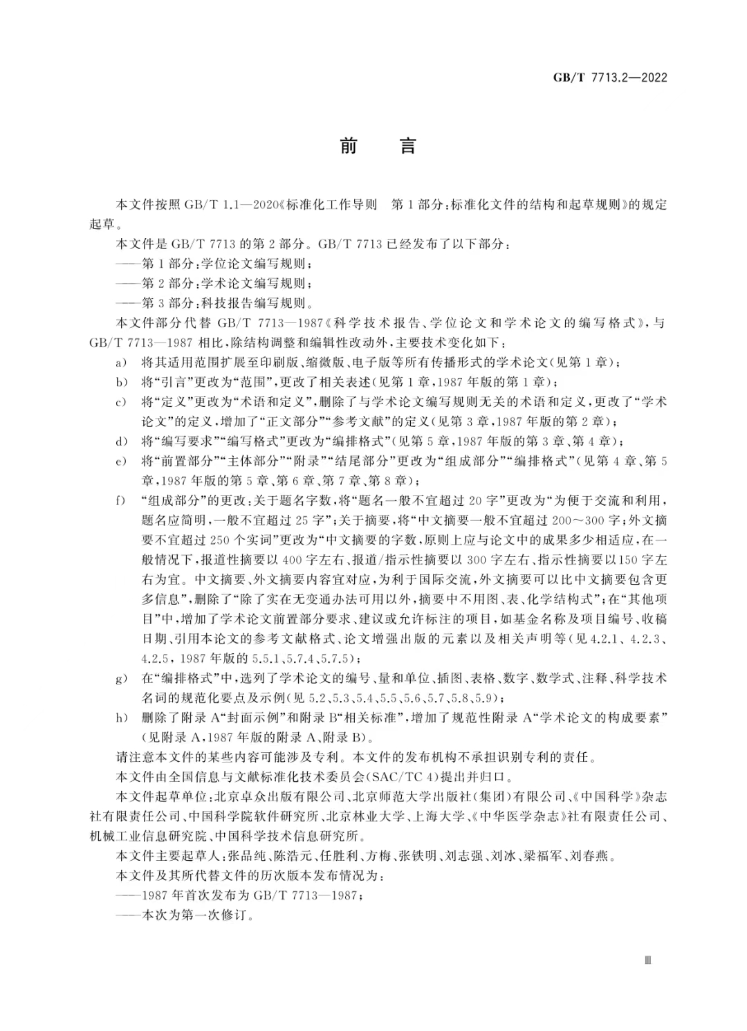 - 删除了附录 A“封面示例”和附录 B“相关标准”,增加了规范性附录 A“学术论文的构成要素”。
