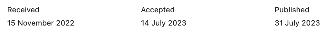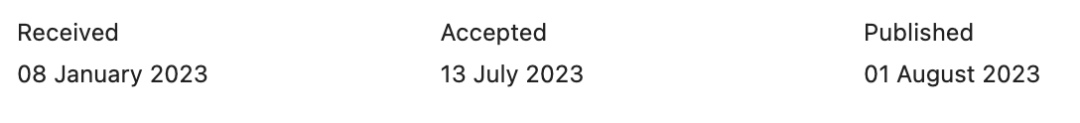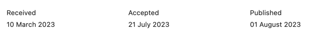 我们随机查看了几篇近期发表的文章数据,发现从投稿到文章被接受的时间在4-9个月不等,平均下来在7个月的左右的时间,和期刊官宣的审稿周期是比较吻合的。