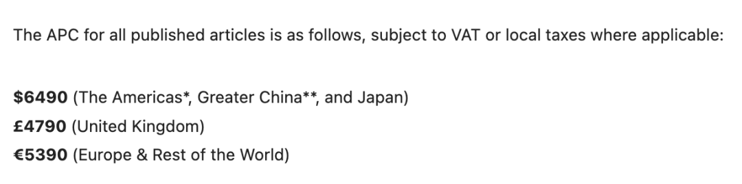 由于是纯OA期刊,在Nature Communications发文是要收取文章处理费用的,中国学者需支付6490美元/篇的文章处理费用,约合人民币46583元。高昂的版面费用也是该期刊一直被大家诟病的争议点所在。
