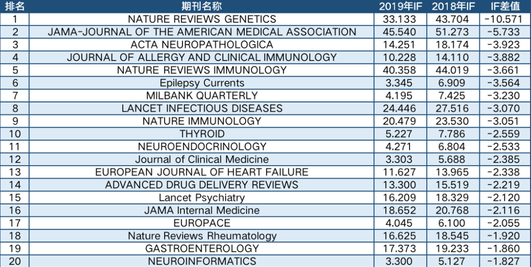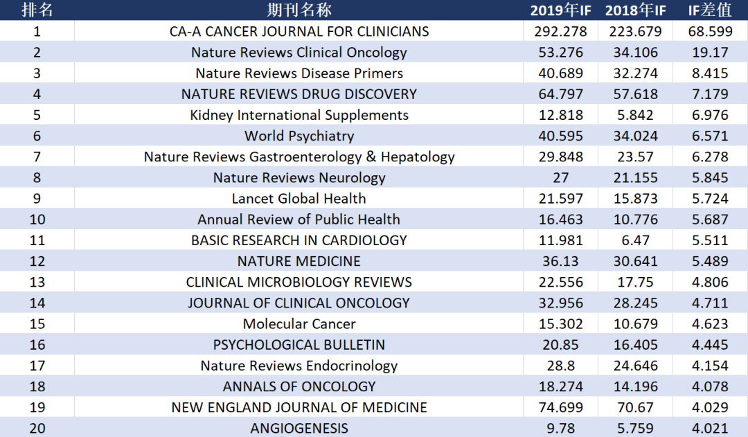 值得注意的是,NEW ENGLAND JOURNAL OF MEDICINE虽在此列表中IF值上涨较少,但不得不考虑其自身IF值基数,该期刊依然表现出不容小觑的实力!