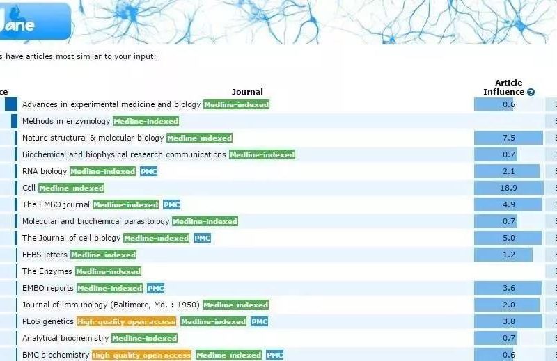 页面分成三个部分,其中,最左边代表了通过系统对以往这期刊中的文章进行检索,计算出的这期刊与你文章之间的相关程度(confidence);中间就是期刊名称以及是不是开放获取(Open access);最右边则是这个期刊的影响力,是这个系统独有的指数。
