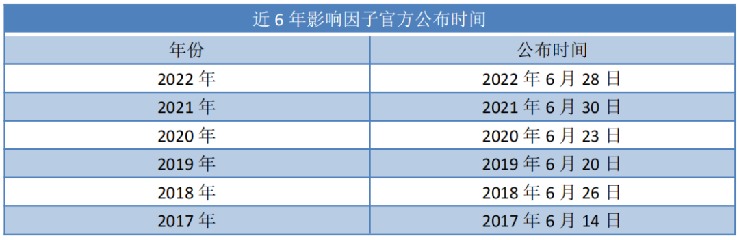 科睿唯安作为期刊引征报告JCR的发布机构,每年会发布一份JCR报告。那么究竟会在哪一天公布呢,我们先来看看近6年的影响因子公布时间。