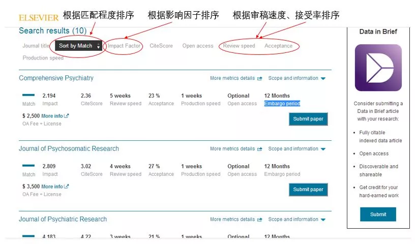 Elsevier的这款Journal Finder的优点是简单易操作,且匹配到的期刊有详细的投稿经验信息。