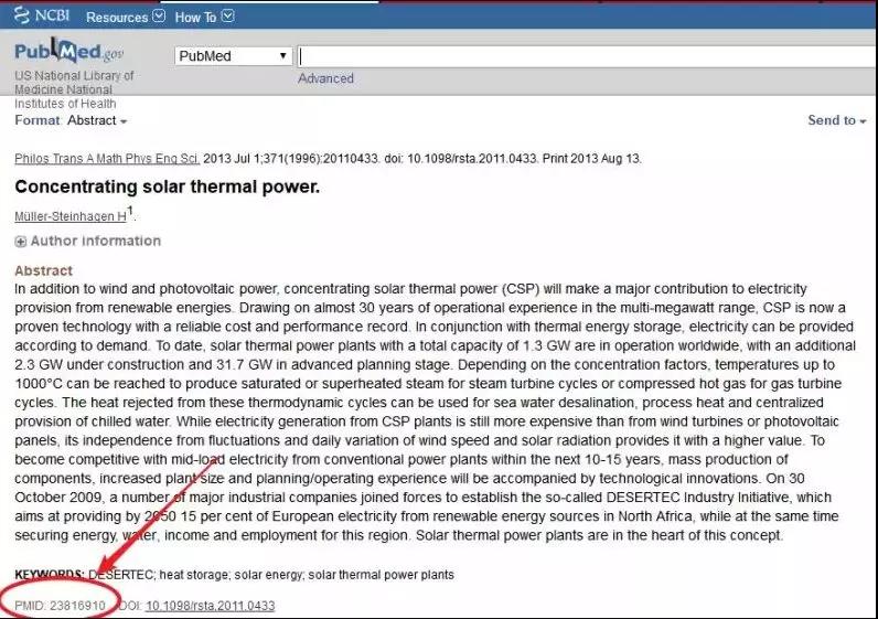 3.此时,我们去Pubmed上搜索想要的文献,找到其PMID号,并进行复制