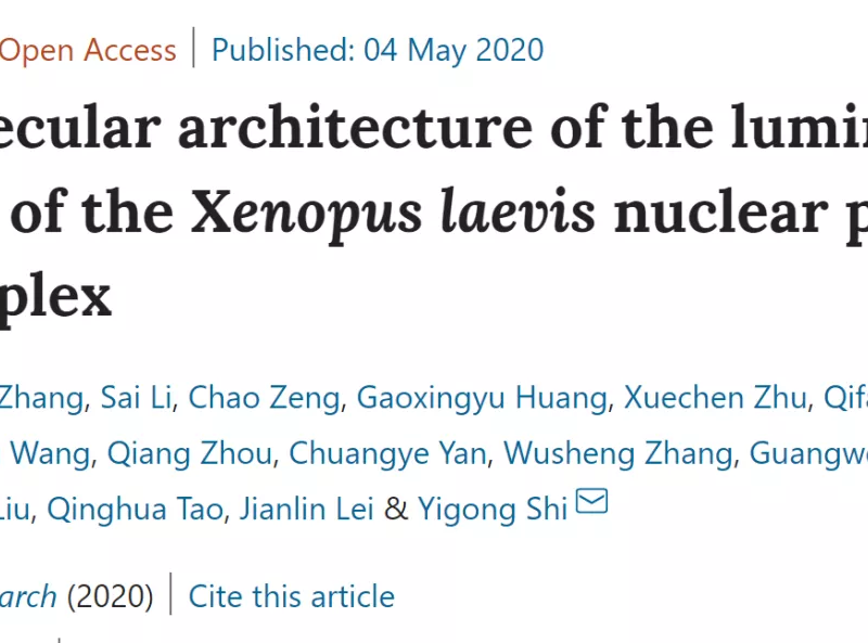 5月4日,施一公团队在 Cell Research 在线发表题为:“Molecular architecture of the luminal ring of the Xenopuslaevisnuclear pore complex”的研究论文。该研究通过冷冻电镜断层成像技术(cryo-ET),解析了整个核孔复合物(NPC)及环绕NPC的腔环(LR)的原位结构。