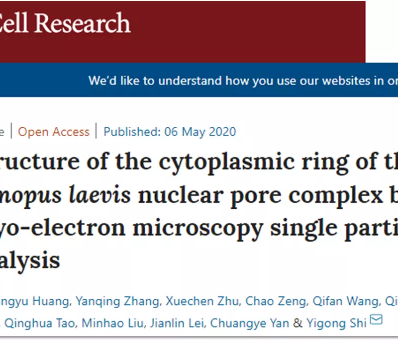 5月6日,施一公团队(清华大学为第一单位)在Cell Research 在线发表题为“Structure of thecytoplasmic ring of the Xenopus laevis nuclear pore complex by cryo-electronmicroscopy single particle analysis”的研究论文,该研究介绍了非洲爪蟾NPCCR的单粒子冷冻电子显微镜(cryo-EM)结构,平均分辨率为5.5-7.9–Å,局部分辨率达到4.5Å。